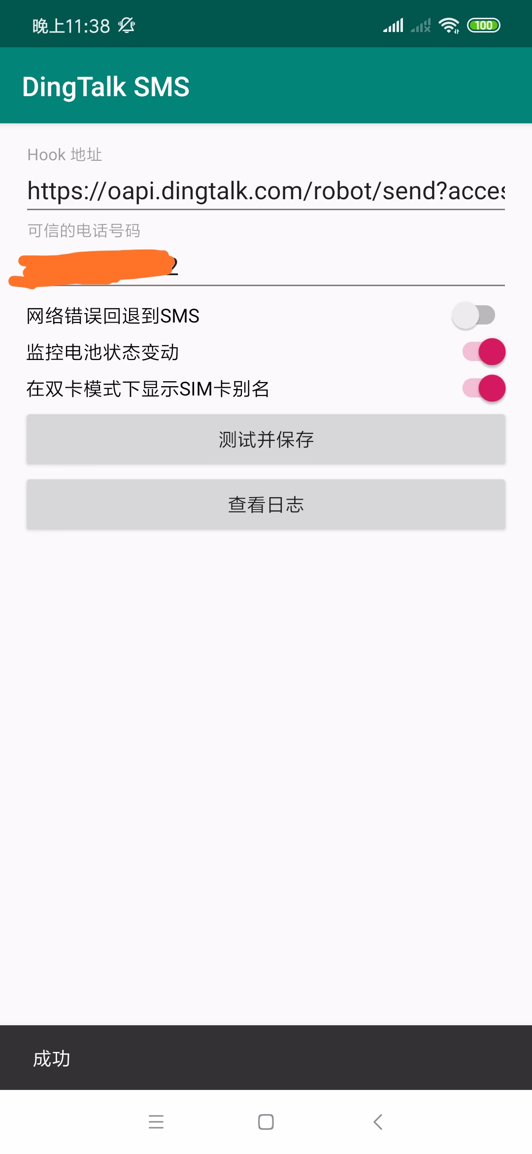 将 Android SMS 转发到 钉钉
