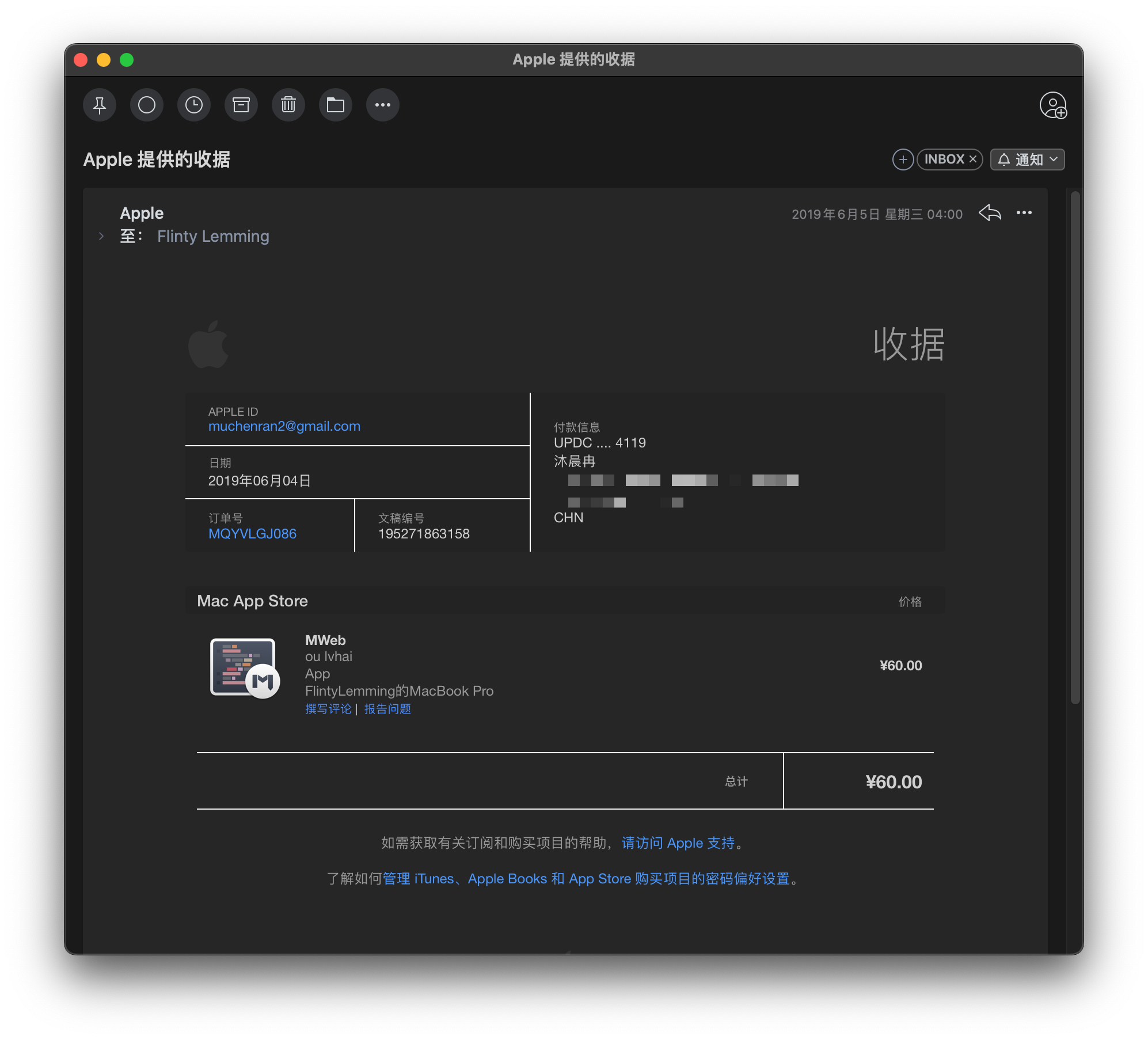 软件许可证明(macOS 单独购买)