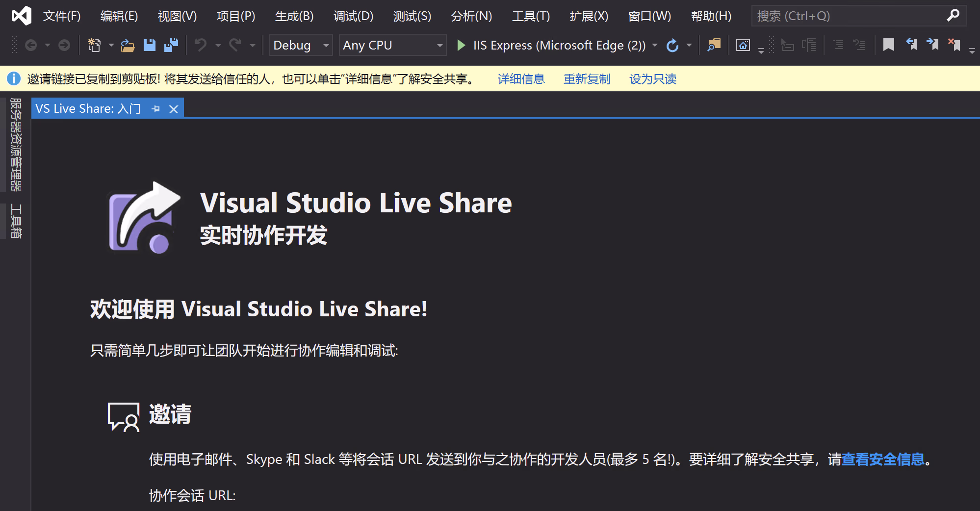 使用 Live Share 合作编辑、调试并运行代码